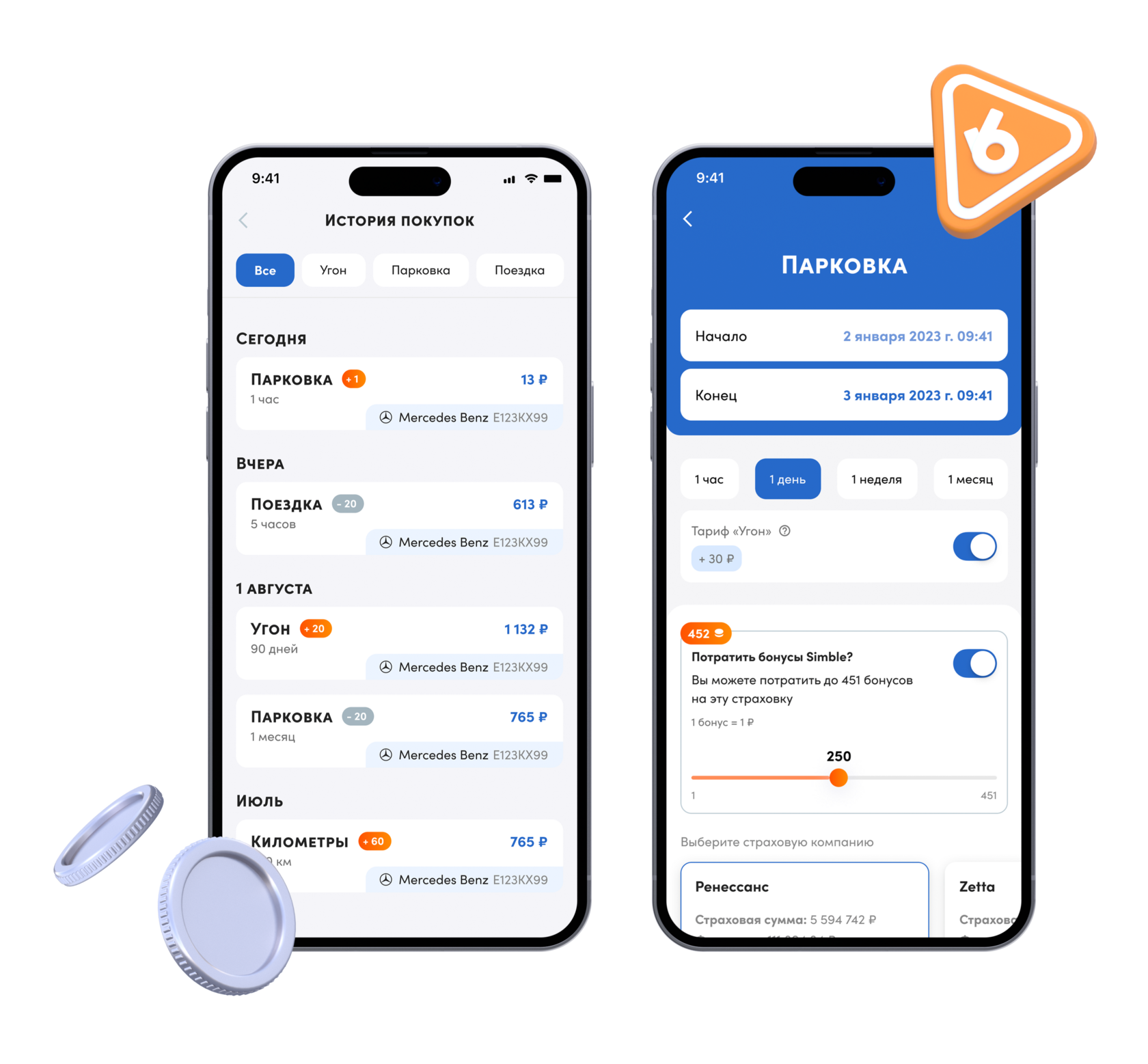 Бонусная программа в приложении Simble работает очень просто: чем больше вы пользуетесь КАСКО на короткий срок, тем меньше вы платите. Получайте бонусы за оформленные полисы КАСКО и оплачивайте ими до 99% стоимости новых полисов!