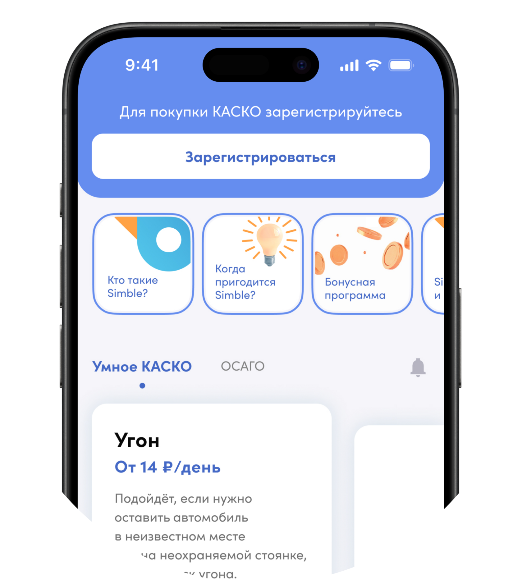 Страховка на 1 час поездки, 100 км пути или на время парковки. От 14 ₽/день